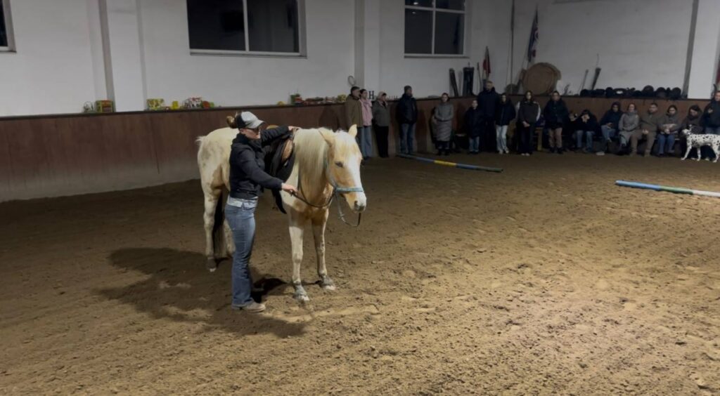 Bene Zsófia western stílusú lovasedző a korrekciós lovaglás módszereit és a rossz szokások gyakorlati javítását mutatta be.