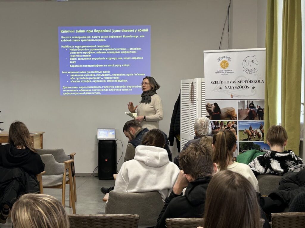 Kateryna Sliwinska, Ph.D., az I. I. Schmalhausen Zoológiai Intézet vezető kutatója, valamint Alla Vinarska, Ph.D., docens előadásukban a lovak főbb bélparazitáiról és kullancsok által terjesztett kórokozókról beszéltek, kitérve az elterjedésre, a diagnosztikai lehetőségekre és a védekezési módszerekre.
