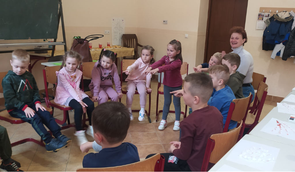 Beregszászban, mint Kárpátalja és Ukrajna más régióiban is már hetek óta a gyerekek nem járhatnak iskolába és óvodába.  Hiányzik nekik a közösség, a barátok, a közös játszás, a jó hangulat. A szülőknek sem könnyű, hiszen vannak, akik munkájuk mellett segítenek a menekülteknek, vannak, akik esetleg elveszítették munkájukat vagy éppen nehezebben élik meg a krízisállapotot. Ezért minden szempontból a szervezők hasznosnak tartották a három órás napközi megszervezését a kisgyerekek számára. A szülők kicsit felszabadultak, és eközben jó helyen tudták a gyermekeik, akik szintén nagyon jól érezték magukat. Gabika néni minden megtett azért, hogy a délután kellemes és hasznos legyen. Egy kis hittanos anyaggal is készült, mely keretében a közelgő virágvasárnapról mesélt. Ezzel kapcsolatban a gyerekek színes papírból elkészíthették saját pálmaágukat, mely emlékezteti majd őket Jézus Jeruzsálembe való bevonulására.