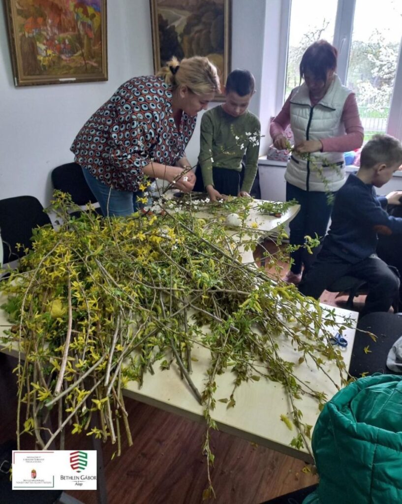 A programra nagy lelkesedéssel készültek a kicsik és nagyok, egyaránt összesen 45 fővel, 5 településről. Az édesanyák gondoskodtak a finomságokról, a gyerekek pedig különböző kreatív foglalkozásokon vettek részt. Készült itt tavaszi motívumokkal ellátott pörgető játék, virágzó faágakból kötött nyuszi formájú ajtódísz, dekupázs technikával vidám virágos tojások. Ezek mellett pedig a régi, hagymahéjjal történő, autentikus tojásfestést is kipróbálhatta mindenki. Az Ugocsában hagyományosan ezzel festették a tojásokat, de a mai nemzedéknek újdonságként hatott. Nagy öröm volt számukra, ahogyan kibontogatták a harisnyába tekert, piros tojásokat, és kirajzolódtak a különféle levél-, virágminták.