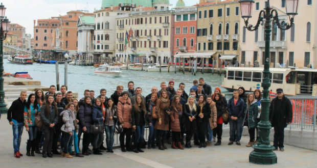 Az 52 fős csoport busszal utazta körbe Európa öt országát: Magyarország, Szlovénia, Olaszország, Franciaország, Svájc. Az első úti cél Velence volt, ahol egy egész délutános programként megtekinthették az óváros nevezetességeit. „Nagyon tetszett a velencei gyalogtúra, a Szent Márk térről az Adriai-tengerre is kilátás nyílt – mondta Ráczkövy Izabella (4. évfolyam, matematika szak). – A vizek városa valóban különleges – mesélte lelkesen –, felejthetetlen a csatornákban gondolázók és a vízre épített házak látványa.”