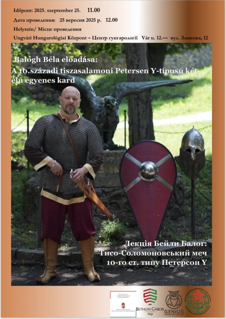Holnap, szeptember 25-én tart előadást Balogh Béla történész az Ungvári Hungarológiai Központban (Vár u. 12.). A prezentáció témája a X. századi tiszasalamoni Petersen Y-típusú kétélű egyenes kard.