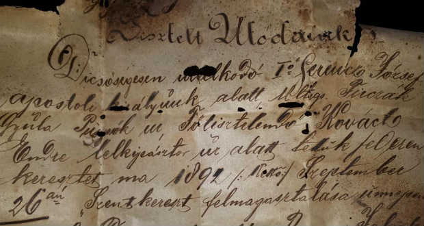 Dicsőségesen uralkodó I. Ferenc József apostoli királyunk alatt … Firczák Gyula Püspök úr Főtisztelendő Kovács Endre lelkipásztor úr alatt tettük fel ezen keresztet ma, 1892. (hétfő) Szeptember 26-án, Szentkereszt felmagasztalása ünnepén.