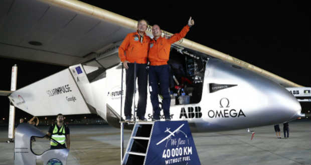A gép így egyetlen csepp üzemanyag felhasználása nélkül tette meg a 42 ezer kilométert. Bertrand Piccard komplikáció nélküli leszállást hajtott végre vele Abu-Dzabiban helyi idő szerint 4.05 órakor.