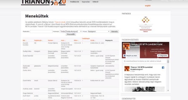 Az adatbázis a http://trianon100.hu/menekultek oldalról érhető el.