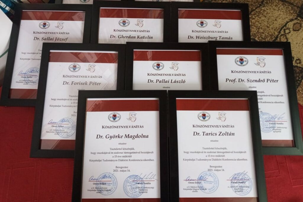 A Kárpátaljai Tudományos Diákköri Konferencia 15. évfordulója alkalmából és az idén tíz éves jubileumát ünneplő „GENIUS” Jótékonysági Alapítvány köszönetét fejezte ki azoknak a neves szakembereknek, akik a kezdetek óta segítik a konferencia munkáját, szakmaiságukkal hozzájárulnak a konferencia, emellett diákokat készítenek fel a kTDK egyes szekcióiba. Számukra a konferencián díszoklevelek és ezüstmedálokat adtak át.
