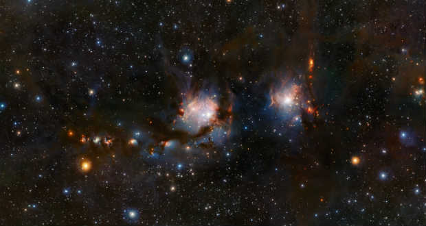 A VISTA új fotóin forró, fiatal csillagok izzanak ragyogó kék fénnyel, valamint vöröses anyagfolyamokat köpködnek a születőben lévő újabbak.