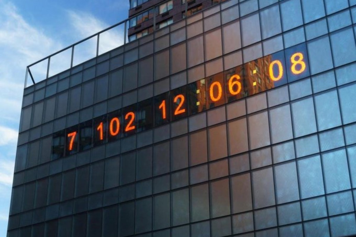 A visszaszámlálást a manhattani Union Square egyik üvegépületére vetítették ki, amelynek falán eddig a Metronóm nevű installáció volt látható, amely azt mutatta, hogy mennyi idő van még hátra a napból.