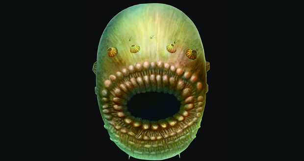 Legszembetűnőbb jellegzetessége azonban igen primitív táplálkozása és az ürülék eltávolításának módja volt. Testéhez képest hatalmas szájat hordozott, valószínűleg táplálékszemcséket vagy akár más élőlényeket evett.