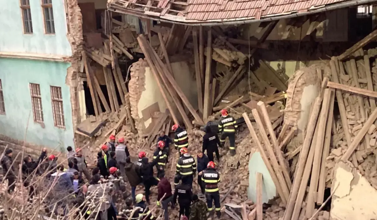Összedőlt a székelyudvarhelyi Tamási Áron Gimnázium diákotthonának egyik külső fala hétfő délután, legkevesebb négy gyermeket maga alá temetve – közölte a Hargita megyei katasztrófavédelem (ISU).