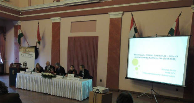 Kosztyó Gyula, aki a Pázmány Péter Katolikus Egyetem doktorandusza, a Megszállás, terror, elhurcolás – szovjet berendezkedés Kárpátalján (1944–1950) című előadásában a kezdetekről beszélt, amikor a Vörös Hadsereg Kárpátalját elfoglalva hozzálátott annak teljes bekebelezéséhez, minden szörnyűségével, ami ezzel járt. A fiatal történész felszólalását szinte folytatva Dupka György, a téma jeles kutatója Kárpátalja erőszakos szovjetizálása, a helyi magyarok, németek internálása és megtorlása az NKVD-jelentések tükrében címmel tartotta meg beszámolóját, melynek során dokumentumokról és az Ural-hegységben tett tényfeltáró körútról készült fotókat is bemutatott. Dupka György élénk szavakkal ismertette az NKVD hétcsapását, melyek során megtizedelte vidékünk lakosságát, és drámaian megváltoztatta annak nemzetiségi összetételét. Egy olyan folyamatot indított el 1944-ben, amely máig érezteti negatív hatását. Ezt követően Kárpátaljai magyarok és németek a Szovjetunió hadifogoly- és munkatáboraiban (1944–1949) címmel tartott előadást Molnár D. Erzsébet, a II. Rákóczi Ferenc Kárpátaljai Magyar Főiskola oktatója.