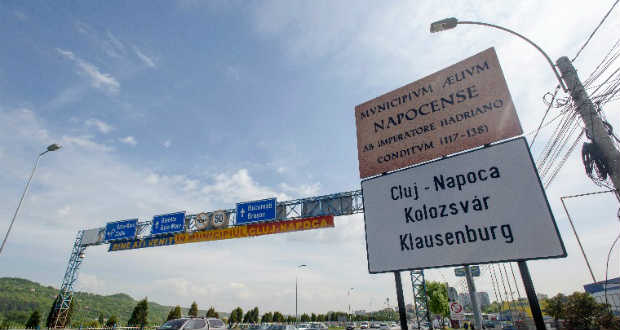 A kolozsvári polgármesteri hivatal kedden kihelyeztette a város nyugati bejáratához az első román-magyar-német nyelvű helységnévtáblát.