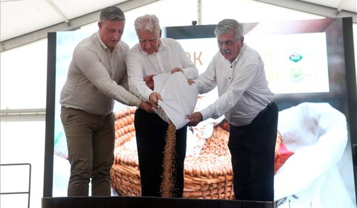 Farkas Sándor, az Agrárminisztérium parlamenti államtitkára azt mondta, az újkenyér havában a búzaösszeöntés a családok ünnepe is. A magyar ember különleges képességének nevezte a válságállóságot, amely mindig megtartotta közösségeit határon innen és túl.