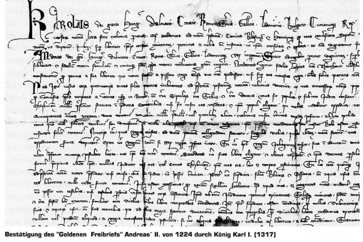 Andreanum a neve annak a kiváltságlevélnek, amelyet II. András király 1224-ben adott a Szászváros és Barót közötti területen lakó erdélyi szászoknak, akik addig különböző ispánok fennhatósága alá tartoztak. Az okmányt a német történészek goldener Freibriefnek, azaz arany szabadságlevélnek nevezik.A kiváltságlevél a király és a szász telepesek viszonyát szabályozza. A szászok közösségét egységes jogi személynek tekinti; meghatározza a jogaikat és a királlyal szembeni kötelességeiket.A kiváltságlevél eredetije nem maradt fenn. A dokumentum létezését bizonyítja, hogy 1317-ben Károly Róbert megerősítette a benne foglaltakat. Szintén megerősítette a kiváltságokat I. Lajos 1366-ban, Mária 1383-ban, Luxemburgi Zsigmond 1387-ben, 1406-ban és 1425-ben. 1486-ban Mátyás király a kiváltságlevelet kiterjesztette a teljes szász közösségre (Universitas Saxonum). A kiváltságokat II. József helyezte hatályon kívül 1785-ben.A Pánczél Károly vezette magyar Nemzeti Összetartozás Bizottsága elismeréssel adózik az idén nyolcszáz esztendős Arany Szabadságlevélnek.