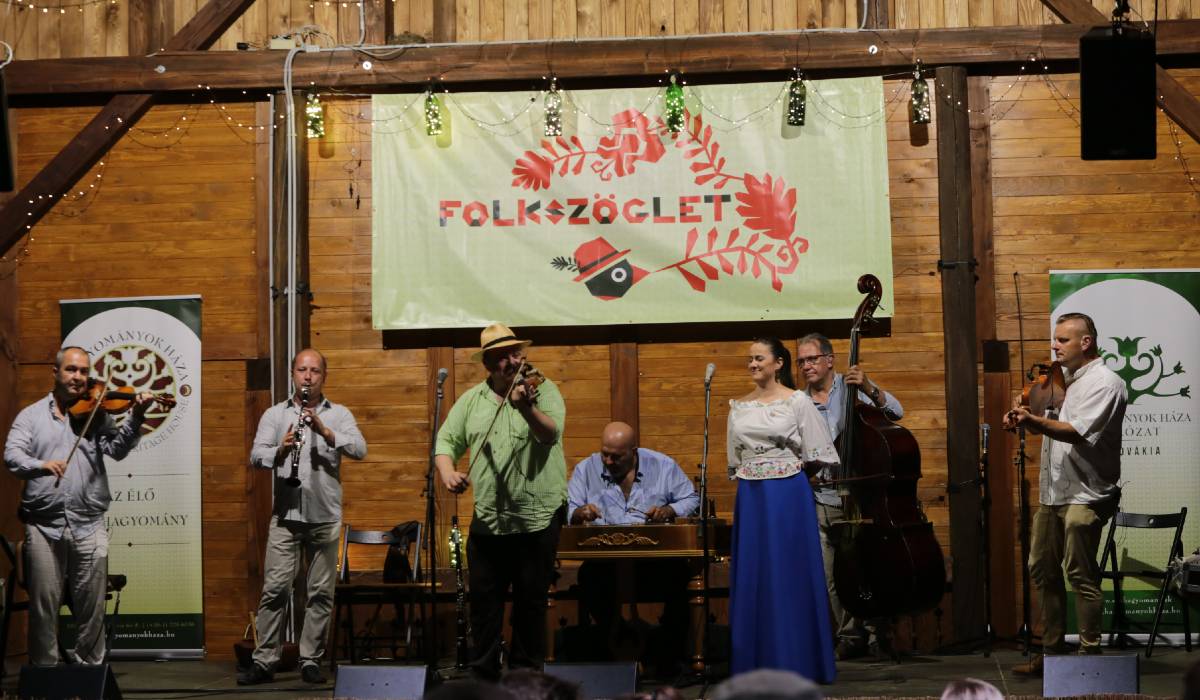 „A Hagyományok Háza Hálózat – Szlovákia immár félévtizedes hagyományát folytatja az idei FolkSzöglet július 12-16. közötti megrendezésével. Az Intézmény részvétele a programsorozatban igazi sikertörténet. A rendezvény központja idén is a 2019-ben átadott, Szádalmásról származó pajta, ami immár a rendezvény emblematikus helyszínévé vált. Korábban, pályázati pénzekből sikerült tető alá hozni a sokat látott fészert, s gondos mesterek keze nyomán a méretes hodály már a tábor céljait szolgálhatja. Az átadásakor 24 ezer ember látogatott a gombaszögi völgybe, s a negyven programhelyszín közül a FolkSzöglet programjai vitték a prímet. A visszajelzések nyomán megálmodói elégedetten nyugtázták munkájuk gyümölcsét. A pandémia elmúltával, ebben az évben a résztvevőket tizenkét nagykoncerttel, táncházakkal, kézműveskedéssel, kalotaszegi legényes workshoppal, délutáni tánctanításokkal, s éjszakai táncházzal várjuk. A felnőttek két napon keresztül élvezhetik a mesekocsma rendezvényeit, s a Hagyományok Háza népszerű vetélkedője, a Folk-kocsmakvíz értékes nyereményekkel csábítja a játékos kedvű hagyományápolókat.