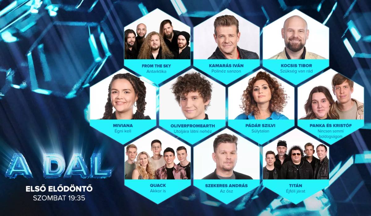 A két akusztikus adásban fordulónként tíz dal hangzik el, de ezekből csak négy juthat a döntőbe, három produkció az ítészek pontjai alapján, egy a közönségszavazatokkal. Az első elődöntő versenydalai gondoskodnak A Dal védjegyének számító műfaji sokszínűségről; a rock-metal, a pop, a jazz és a népzene is képviselteti magát.
