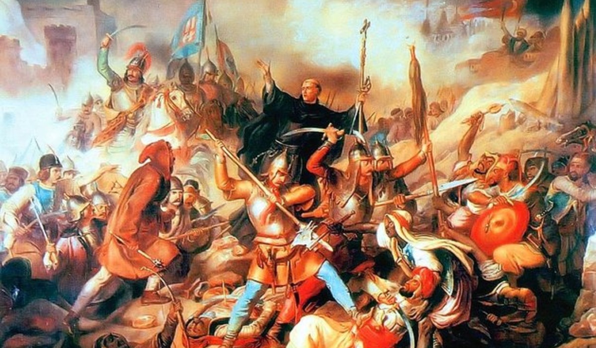 Nyitókép: A nándorfehérvári csata egy Ismeretlen, 19. századi festő munkáján. A kép közepén kereszttel a kezében Kapisztrán János.