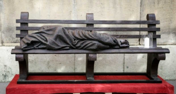 Átadták a Hajléktalan Jézus szobrát Budapesten, a VIII. kerületben. A szokatlan Krisztus-ábrázolást, amely padon fekvő hajléktalanként jeleníti meg Jézust, Erdő Péter bíboros, esztergom-budapesti érsek áldotta meg kedden.