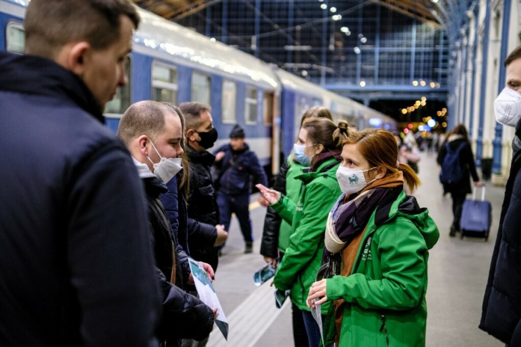 Csütörtök délutántól kezdve folyamatosan fogadják a menekülőket a fővárosban a Nyugati pályaudvaron, valamint a debreceni vasútállomáson. Az MRSZ munkatársai többek között segítenek összekötni az érkezőket a szállítási szolgálatot vállaló önkéntesekkel, valamint szükség esetén átmeneti szálláshelyre juttatják el a menekülőket – ezzel a lehetőséggel már közel százan éltek a háború első két napjában.