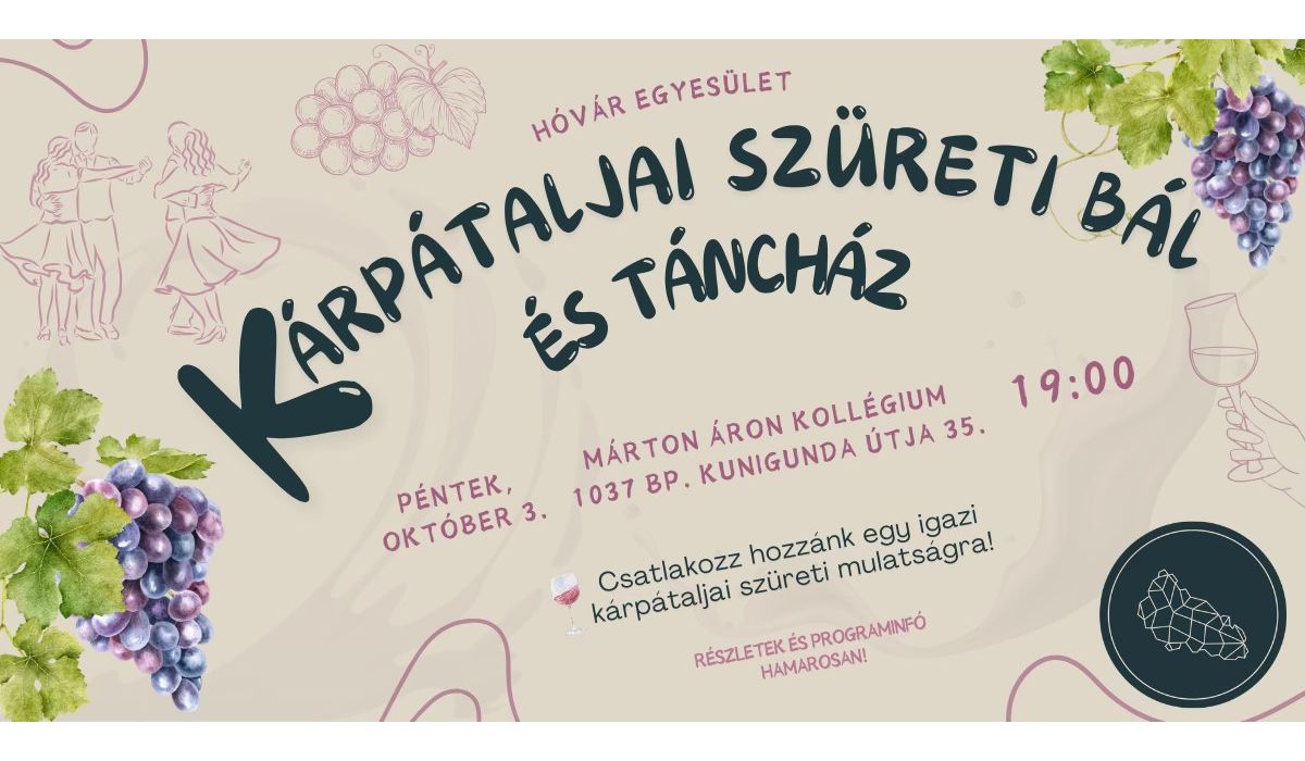 Kárpátalján nagy hagyománya volt a szüreti mulatságoknak, ezt a hangulatot szeretnék megidézni a szervezők a Márton Áron Kollégiumban (Kunigunda útja 35.) október 3-án a 19.00 órakor kezdődő estjükkel.
