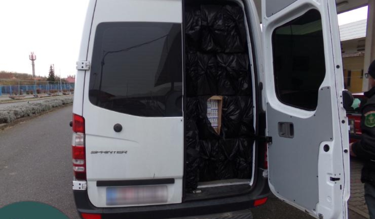 A mikrobusz rakterében fekete fóliába csomagolt kartondobozokban 141 500 doboz zárjegy nélküli, több mint negyedmilliárd forint értékű ukrán cigarettát találtak.