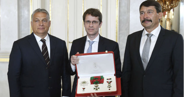 Roska Botond neurobiológus kutatóorvos vehette át idén a Szent István-rend állami kitüntetést Áder János köztársasági elnöktől augusztus 20-án a Sándor-palotában.