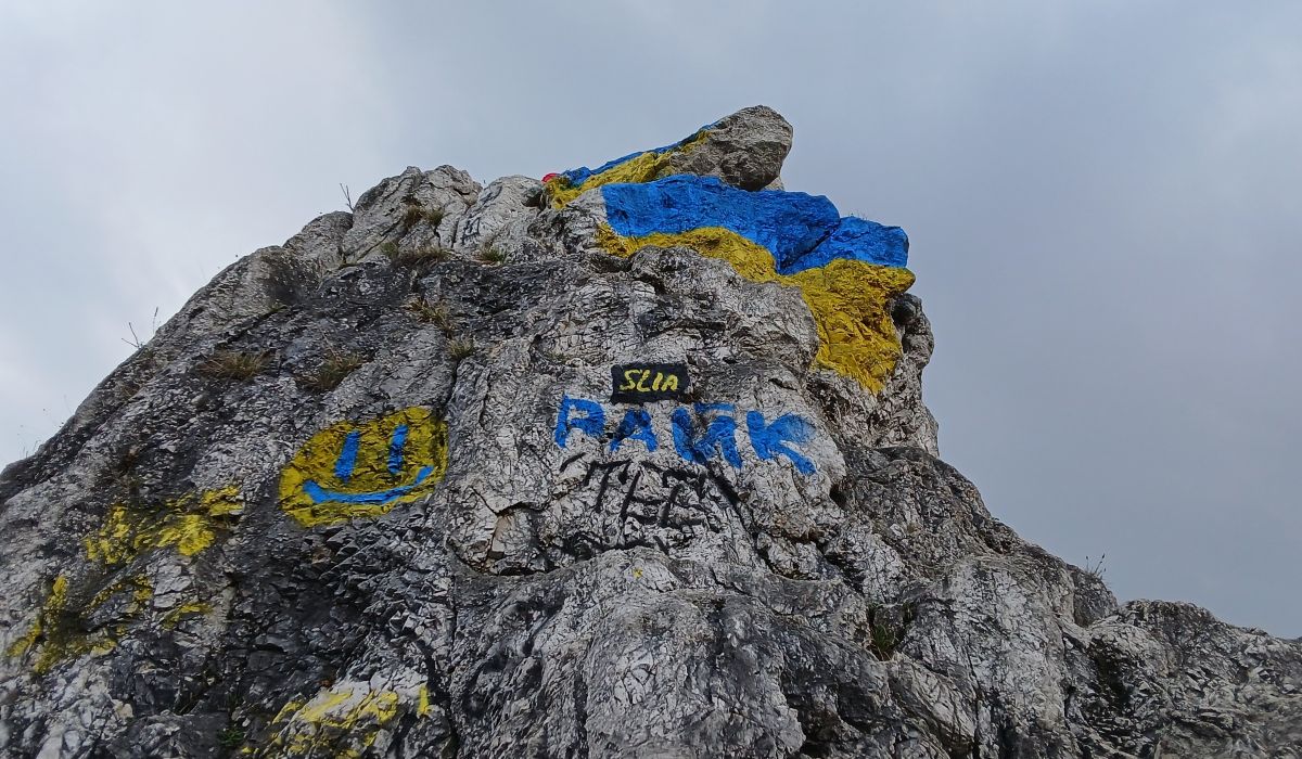 Ismeretlen személyek az ukrán nemzeti lobogó színeire festették át a Tündér-sziklát, amely védett területnek minősül – közölte szerdán a Facebookon a Duna-Ipoly Nemzeti Park.