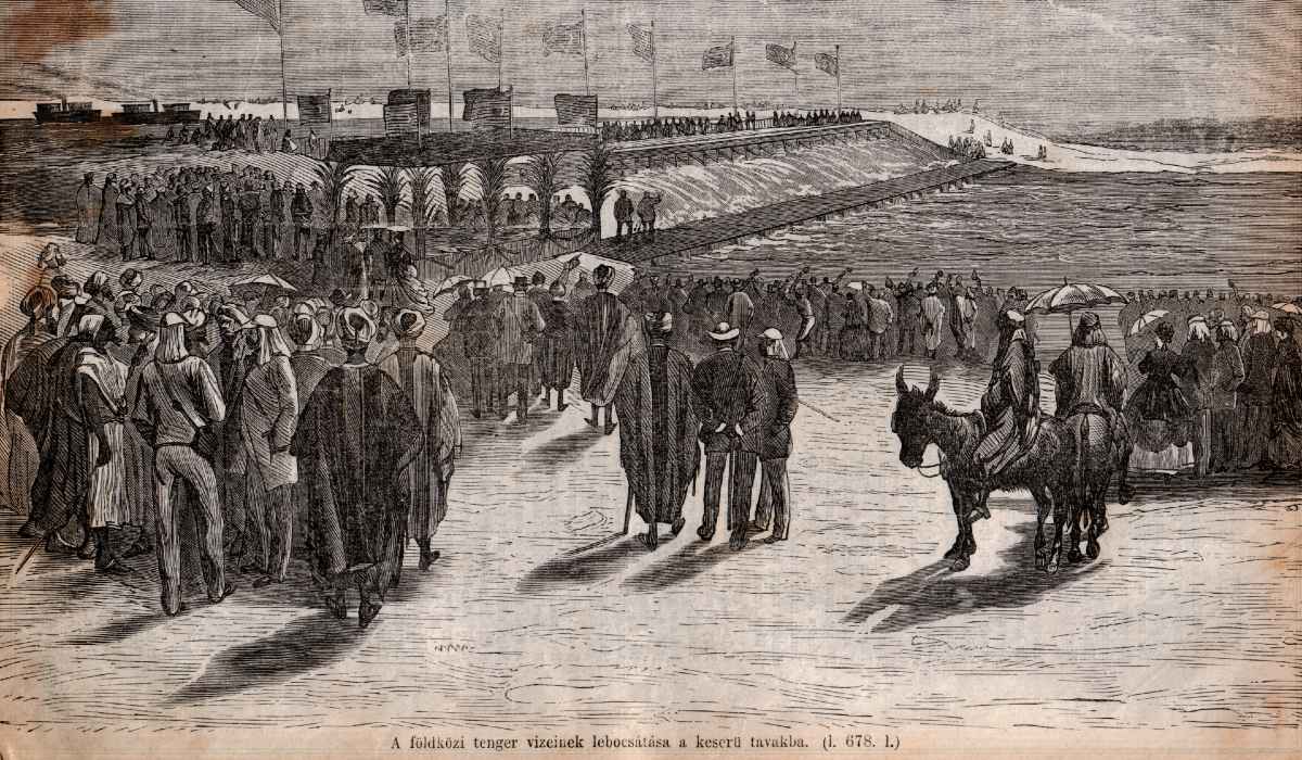 Nyitóképen: a Képes Világ című ismeretterjesztő és szépirodalmi képes családi lap beszámolójának illusztrációja, a Szuezi-csatorna átadásáról. 1869. 43. szám, 677. oldal