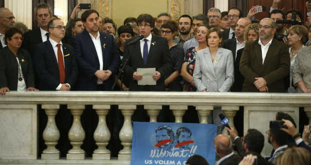 Puigdemont a katalán parlament épületében több száz híve előtt hangsúlyozta: a katalán függetlenség támogatóinak most a békesség és méltóság értékeihez kell ragaszkodniuk. ”A mi kezünkben, és a ti kezetekben van, hogy felépítsük a köztársaságot” – jelentette ki Puigdemont. Kiemelte: a parlament pénteken megtette azt a régóta vágyott lépést, amelyért már hosszú ideje küzdött, és teljesítette a szavazóktól kapott felhatalmazást.