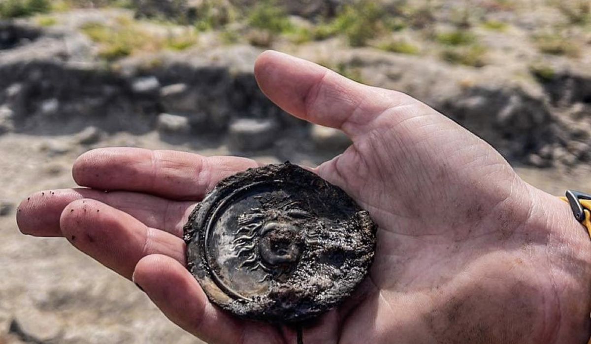 A feltárás közben számos lelet került elő, köztük egy lándzsa- és egy gerelypenge, agyagedények és egy kardhüvely rézből készült tartozéka, de mind közül a legérdekesebb egy ezüstből készült korong alakú jelvény.