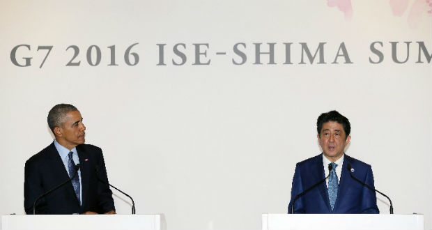 A kétoldalú találkozó után tartott közös sajtótájékoztatón a japán miniszterelnök közölte: nem tervezi, hogy Obama péntekre tervezett hirosimai látogatásához hasonlóan az Egyesült Államok számára szimbolikus jelentőséggel bíró Pearl Harborba utazzon.