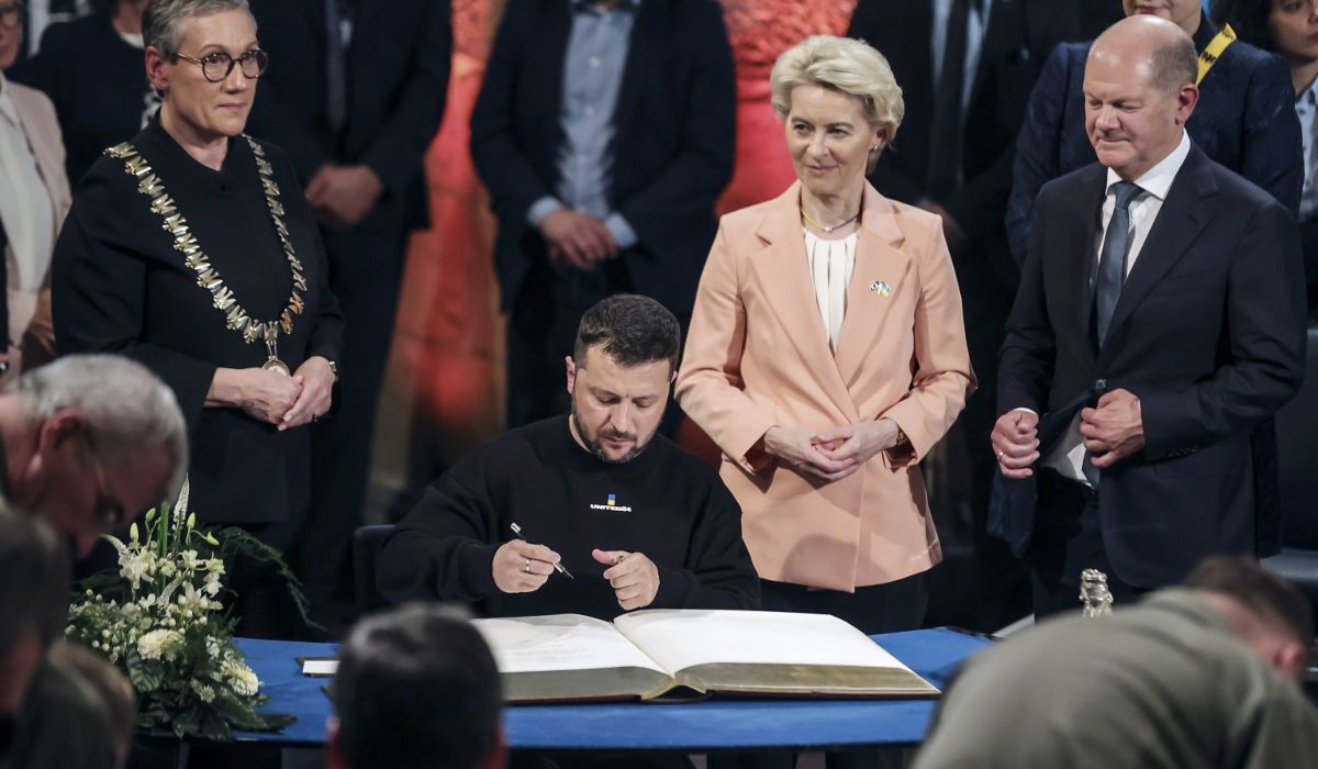 Az aacheni városháza még tavaly decemberben közölte, hogy az ukrán népet és az államfőt tüntetik ki idén a rangos elismeréssel. Kiemelték, hogy