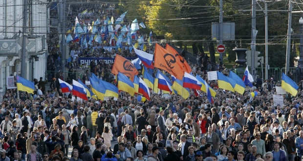 Az ukrán konfliktus kialakulása óta első ízben tartottak nagyszabású béketüntetést Moszkvában és Oroszország más városaiban – adta hírül az unian.ua hírportál.