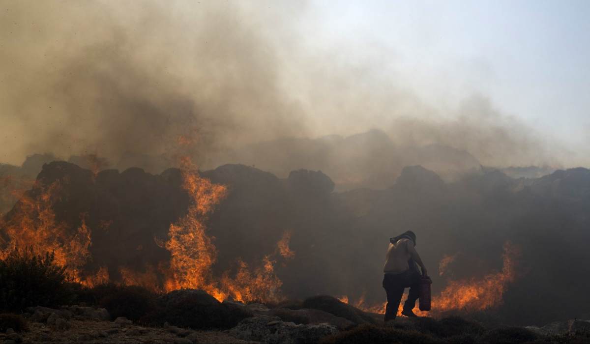 Kiemelt kép: Egy férfi küzd a lángok megfékezésén a Rodoszon fekvő Lindoszban 2023. július 24-én. Görögországban összesen 64 térségben oltják a bozóttüzeket, Korfu és Rodosz szigetén az utóbbi napokban 32 ezer embert telepítettek ki. Rodoszon egy hete pusztítanak a lángok. (MTI/AP/Pétrosz Jannakurisz)