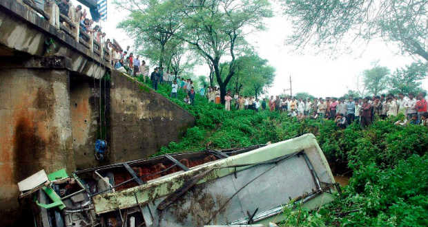 A teherautó 25-30 méteres magasságból a Szon folyó száraz medrébe zuhant Madhja Prades államban. Indiában évente több tízezer ember leli halálát az utakon. A baleseteket többnyire a rossz minőségű utak, az elhanyagolt járművek és gondatlan sofőrök okozzák.