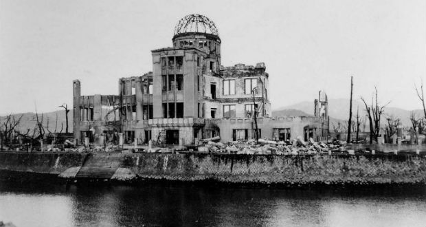 Három amerikai repülőgép tűnt fel 1945. augusztus 6-án reggel fél nyolckor a japán nagyváros, Hirosima fölött. Közülük az egyik B-29 típusú, Enola Gay nevet viselő bombázó alacsonyabbra ereszkedett, és „valamilyen tárgyat” dobott le. Majd 8 óra után 15 perccel és 17 másodperccel a város fölött vakító kékesfehér fény lobbant, mennydörgés szerű hang hallatszott, és az azóta elhíresült gombafelhő szökött az ég felé: 600 méter magasságban felrobbant a Little Boynak elnevezett, 17 ezer tonna TNT-vel egyenlő hatású első atombomba.
