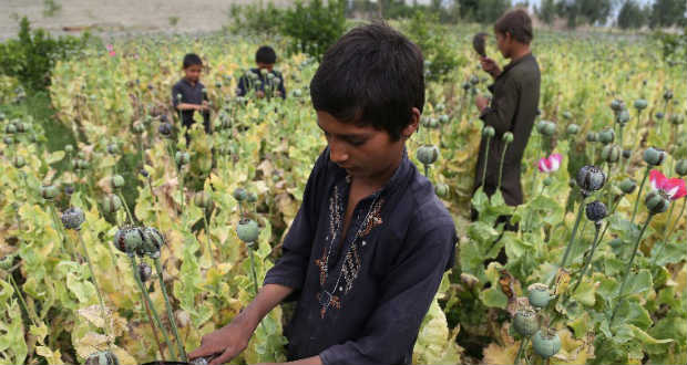 Az ópium – a mák éretlen termésének a levegőn kicsapódott nedve – a heroin alapanyaga. Afganisztánban állítják elő a világ herointermelésének 80 százalékát. A felkelők harcukat a kábítószer eladásából befolyó jövedelmekből finanszírozzák, ugyanakkor sokan fektettek pénzt a tiltott ópiumgazdaságba, ami megnehezíti a kabuli kormánynak, hogy megerősítse jelenlétét a nagy ópiumtermelő tartományokban.