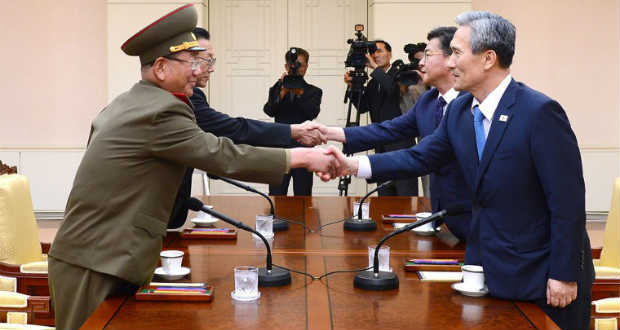 Az elmúlt napok feszültségei, a kölcsönös fenyegetések után hétfőn megállapodás született a két Korea között a háborús veszély elhárításáról – jelentette be a dél-koreai elnöki szóvivő.