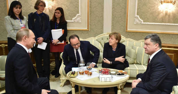 Francois Hollande francia államfő meghívására Angela Merkel német kancellár, Vlagyimir Putyin orosz elnök és Petro Porosenko ukrán államfő a francia elnöki hivatalban ült tárgyalóasztalhoz 2014 júniusa óta negyedik alkalommal. Az Európai Unió az év végén megvizsgálja, hogy teljesültek-e a februári minszki csúcstalálkozón tető alá hozott egyezségek a tűzszünetről és a nehézfegyverek visszavonásáról Ukrajna keleti részéből, s ennek eredményeként enyhíthetők-e a nemzetközi szankciók Oroszországgal szemben.