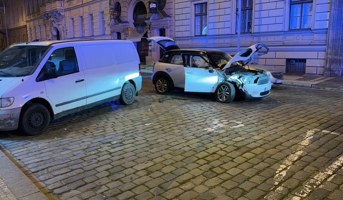 Egy 35 éves, ittas állapotban lévő nő elvesztette uralmát járműve felett, majd több parkoló autónak is nekiütközött május 12-én este Prága belvárosában.