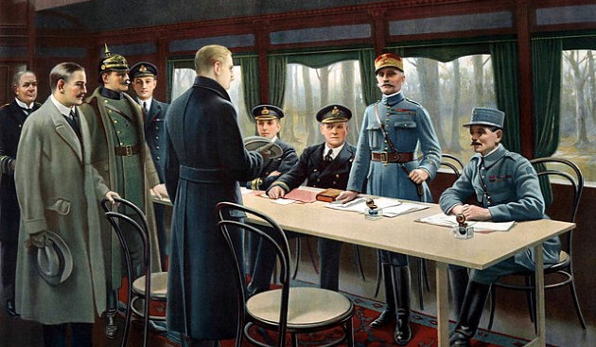 1918. november 11-én kevéssel reggel 5:00 után a német, brit és francia küldöttség tagjai egy vasúti étkezőkocsiban gyűltek össze Párizstól északra, és aláírtak egy fegyverszüneti egyezményt, amely kijelölte az első világháború végét.