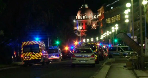A helyi újság, a Nice Matin honlapján arról számolt be, hogy az ünnepi tűzijáték alatt, este fél 11 felé, egy teherautó ráhajtott a sétányra és mindenkit elgázolt. Az esetet látó újságíró szerint mindenütt vér volt, és sok a sérült is.