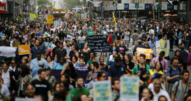 A szervezők szerint öt éve a világon sehol nem sikerült ekkora tömeget megmozgatni az ügy érdekében, mi több, a maga nemében talán ez volt minden idők legnagyobb ilyen megmozdulása. A Manhattan központján mintegy három és fél kilométer hosszan, a Népi Klímamenet keretében felvonuló, 310 ezresnek mondott tömeghez csatlakozott Ban Ki Mun, az ENSZ főtitkára, Bill de Blasio New York-i polgármester, Al Gore volt amerikai alelnök, Jane Goodall főemlős-kutató, Segolene Royal francia környezetvédelmi miniszter, Leonardo DiCaprio és Mark Ruffalo színész, valamint több amerikai szenátor is.