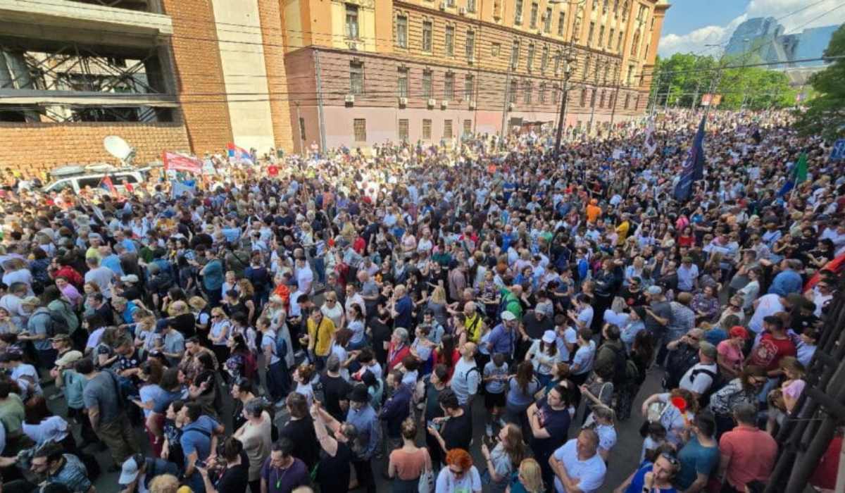 Több ezren vonultak csütörtökön a szerb kormány épülete elé, hogy megemlékezzenek a hat hónapja történt, tizenhat áldozatot követelő újvidéki tragédiáról, és tiltakozzanak a kormány ellen.