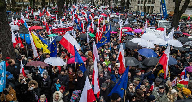 Tömegtüntetés volt a lengyel parlament előtt