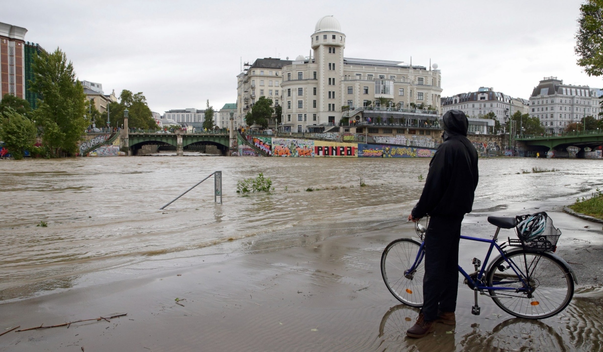 A víz szintje a Wien folyón a Kennedy-hídnál, Bécs nyugati részében egy nap alatt vasárnap reggelre 50 centiméterről 2,26 méterre emelkedett – közölte az osztrák katasztrófavédelmi szolgálat. A víz sétálóutcákat és kerékpárutakat öntött el, a folyóparti éttermek teraszai pedig víz alá kerültek.