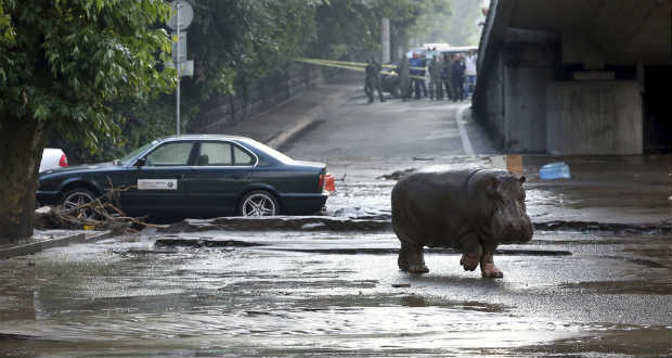 Vadállatok kószálnak Tbilisziben a vihar után