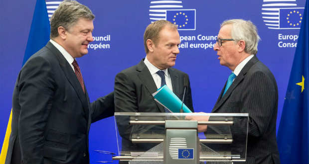 Az Ukrajnával szemben alkalmazott schengeni vízumkényszer eltörlésére fog javaslatot tenni áprilisban az Európai Bizottság – jelentette be csütörtökön Jean-Claude Juncker, a brüsszeli testület vezetője, miután Donald Tuskkal, az Európai Tanács elnökével közösen megbeszélést folytatott Petro Porosenko ukrán államfővel.