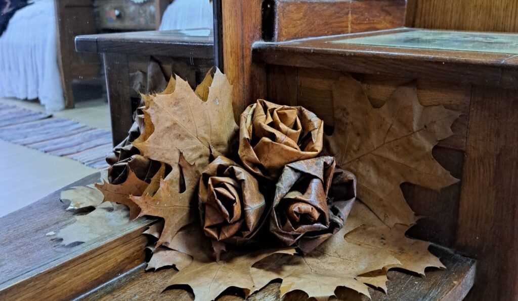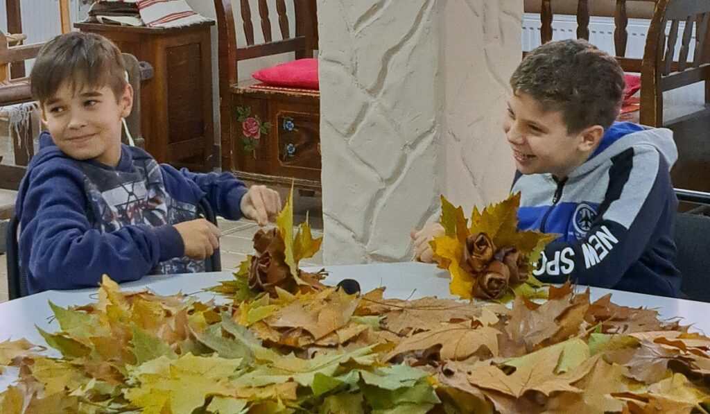 Az őszi tematikájú kézműves foglalkozáson kukoricacsuhéból babák, falevelekből pedig rózsacsokrok készültek.