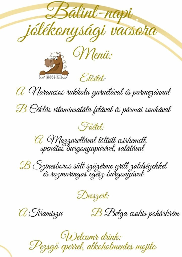 Az eseményen a Kiscsikó menza és étterem ad vacsorát. A bevétel egy részét jótékonysági célra ajánlja fel a PCS-nek. A szervezet idei gyűjtésével a Tulipán Tanodát támogatja.